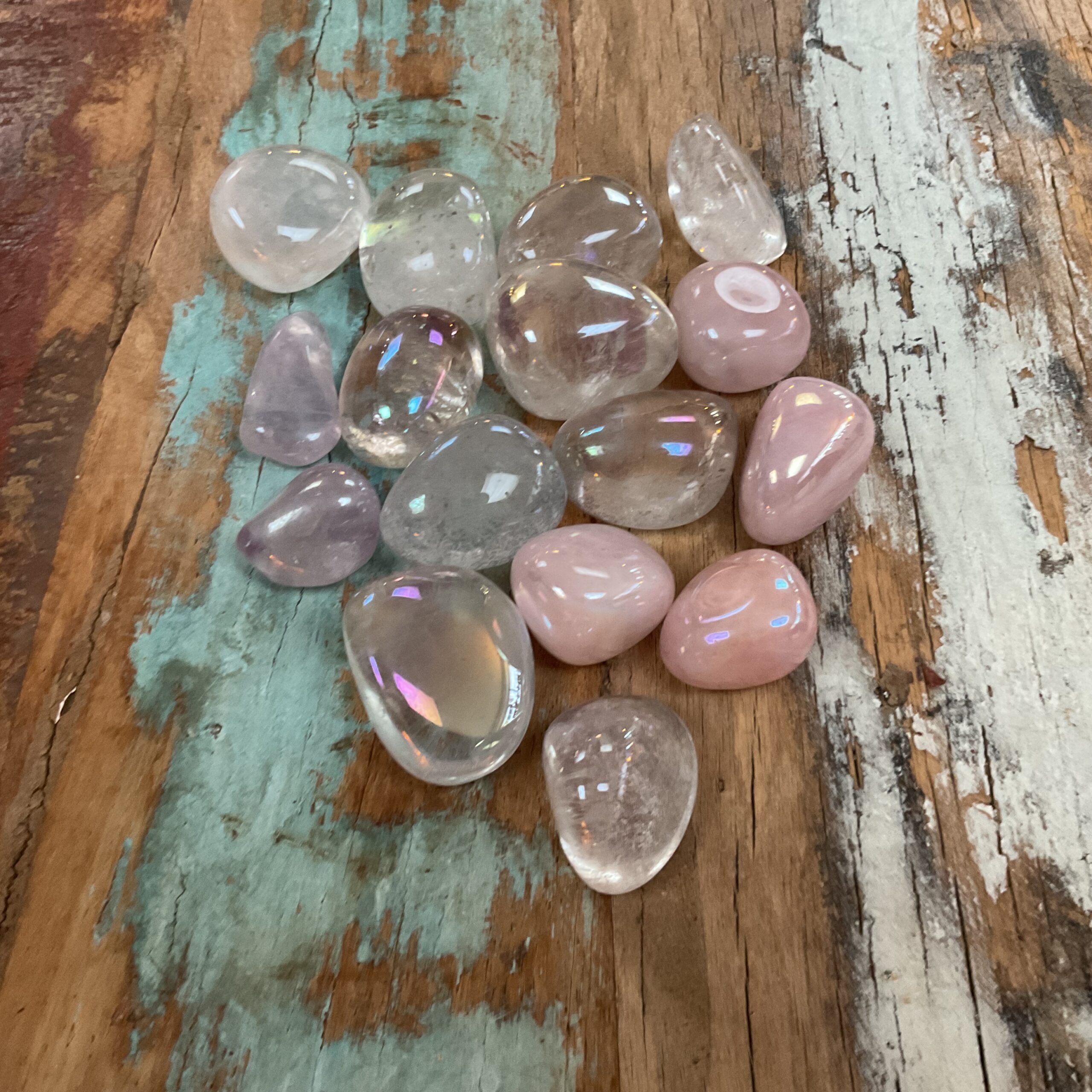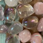 Angel Aura is bergkristal en is behandeld met platina en zilver, waardoor het oppervlak een olieachtige glans met een regenboog aan kleuren heeft. Deze laag is permanent en kan er niet afgewassen worden. Angel Aura verenigt de energie van bergkristal, platina en zilver in zich. Het resultaat is een heel zachte, liefdevolle en lichte energie welke een sereen, vredig en tevreden gevoel geeft. De steen heeft een sterke connectie met het Engelenrijk en helpt je haar boodschappen te ontvangen. Het bevordert spirituele inzichten en kennis en helpt je om je spirituele levensdoel te vinden. Angel Aura is een krachtige reiniger van lichaam, geest en ziel en helpt je losmaken van negatieve entiteiten en verbindingen. De steen geeft zo’n fijn en rustig gevoel en helpt bij stress spanning en zorgen te verminderen. Angel Aura is een meestergenezer en helpt bij angst, paniekaanvallen, fobieën en voor gebruik bij Reiki-genezing, reflexologie en shitasu.