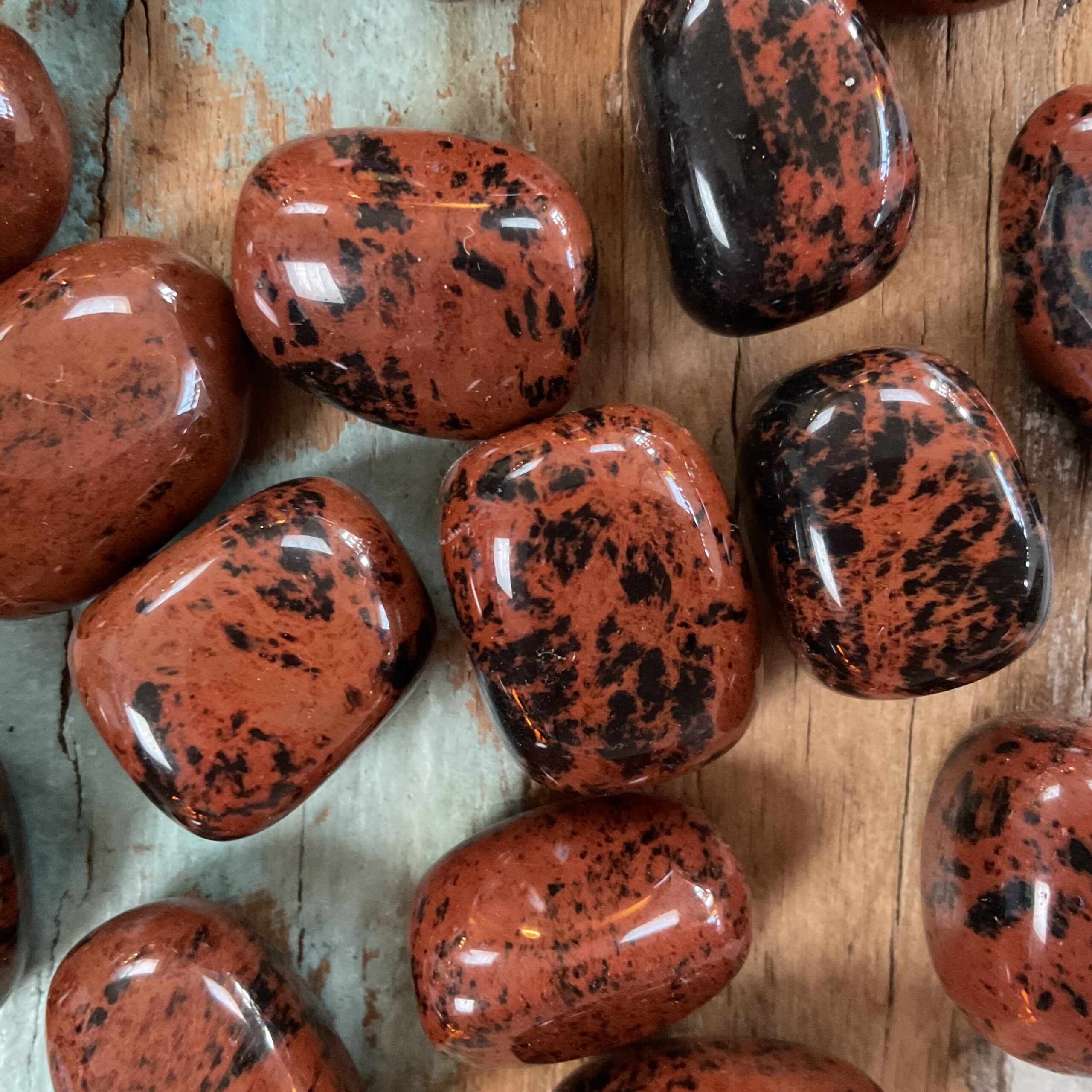 Mahonie Obsidiaan is geweldig in zowel aarding als bescherming en moedigt kracht aan in tijden van nood. Het elimineert energetische blokkades, verlicht spanningen en helpt de groei op alle niveaus te stimuleren. Deze obsidiaan soort is enorm beschermend en wordt vaak gebruikt om energiekoorden te verwijderen tussen personen die energie opzuigen en grenzen overschrijden. Het is een sterk inzichtgevende en reinigende steen die persoonlijke ontwikkelingen ondersteunt. Mahonie Obsidiaan werkt als een spiegel en kan zeer heftige emoties oproepen. Het is een confronterende steen en kan energie blokkades opheffen en tegelijkertijd het aura versterken. Het wordt gebruikt als een grote reiniger van negatieve energieën en helpt niet alleen negativiteit in de omgeving te verwijderen, maar ook die van je eigen negatieve emoties zoals jaloezie, woede, hebzucht etc. Deze steen wordt vaak gebruikt voor genezing en loslaten, energie blokkades opheffen en helpt om waarheden naar de oppervlakte te brengen zodat deze kunnen worden opgelost. Mahonie Obsidiaan is een goede aarde steen en is dus ideaal voor spirituele werkers die zo nu en dan aarding verliezen. Mahonie Obsidiaan heeft een zachtere energie dan die van Zwarte Obsidiaan.
