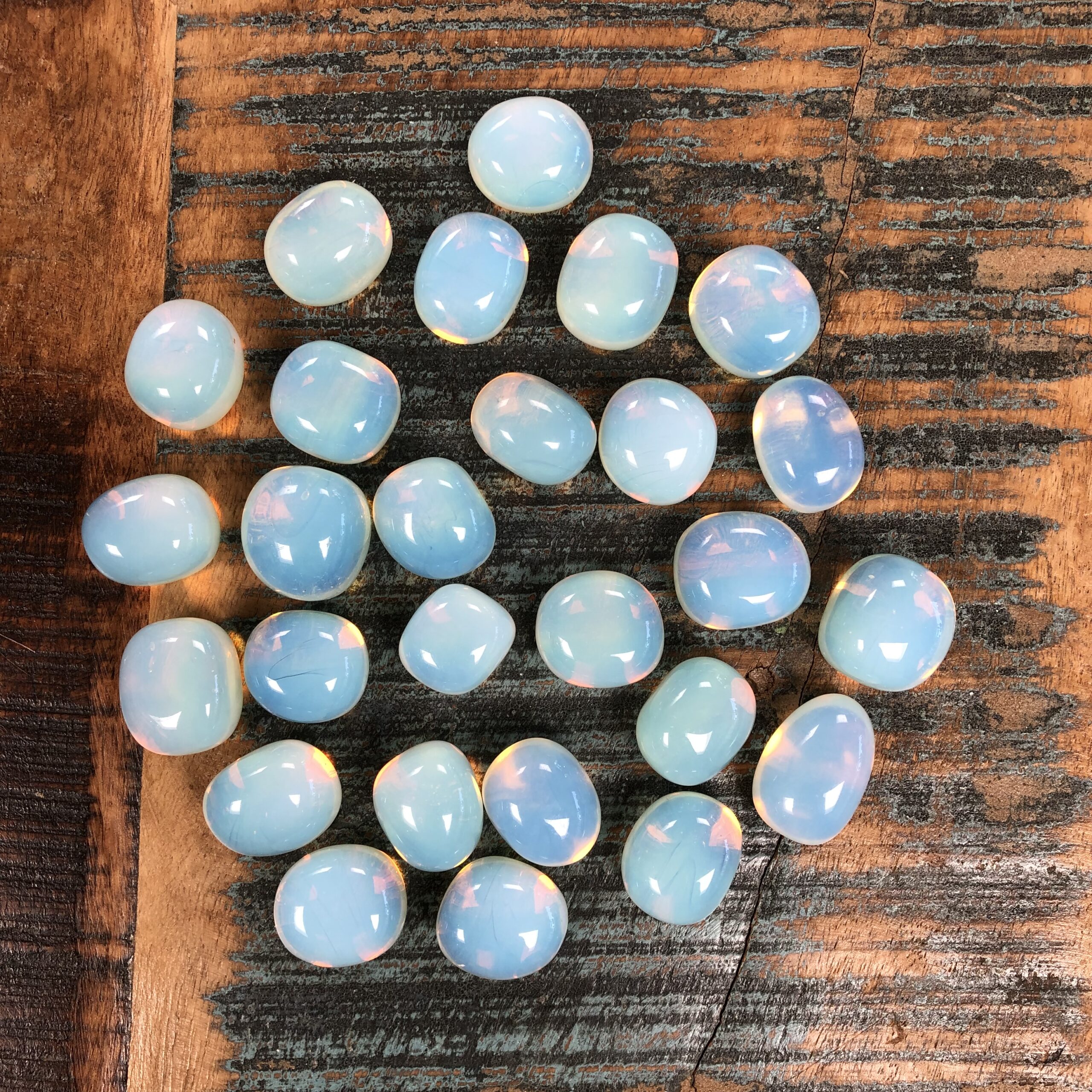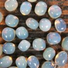Opaliet (Opaline) is een synthetisch glas en is door de mens gemaakt. Het is een doorzichtige steen met een melkachtige blauw gele glans. De mooie kleuren en de zachte energie spreekt vaak de kinderen aan. Opaliet is een bijzondere steen die zijn eigen unieke werking en eigenschappen heeft. Deze steen straalt zachte en warme energie uit en helpt bij ontspanning en het helder maken van je gedachten. Het geeft je een gevoel van harmonie, geborgenheid en veiligheid zeker bij meditaties. Het geeft innerlijke rust en helderheid in je leven. Opaliet is een steen van persoonlijke kracht en geeft je het gevoel van eigenwaarde. Het heeft ook de kwaliteit dat je innerlijke kracht en je gevoelens kunt ontdekken en uit te drukken. Deze steen kan je gebruiken als er grote veranderingen plaats gaan vinden en het helpt je bij het maken van soepele overgangen. Het komt ten goede aan allerlei levensveranderingen zowel groot als klein, zoals verhuizen, nieuwe relatie, nieuwe baan. Voor succes in bedrijfsleven helpt het bij het manifesteren van rijkdom. Opaliet bevordert ondersteunende eigenschappen van doorzettingsvermogen en om je uitputting en vermoeidheid te overwinnen, alsook verbeterde communicatie. Opaliet werkt opbeurend, verlichtend en maakt het hoofd helder. Deze steen geeft letterlijk en figuurlijk lucht en helpt je om je staande te houden in belastende situaties.
